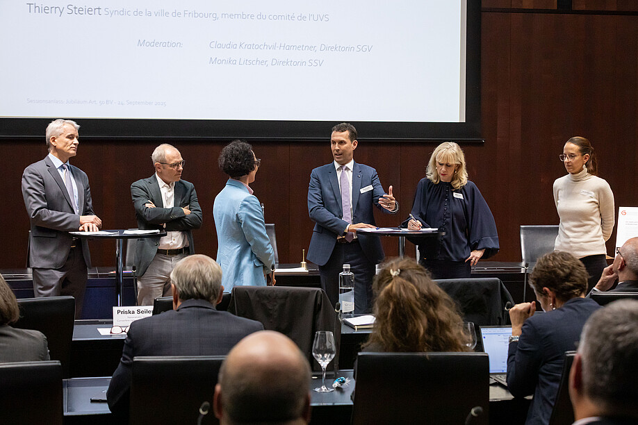 Il 24 settembre, l’Associazione dei Comuni Svizzeri (ACS) e l’Unione delle città svizzere (UCS) hanno consegnato la dichiarazione «Le città e i comuni nello Stato federale» al consigliere federale Beat Jans, a Palazzo federale. La dichiarazione s’inserisce nel contesto del 25° anniversario dell’articolo 50 della Costituzione federale, che obbliga la Confederazione a tenere conto, nell’ambito del suo agire, delle possibili conseguenze per i comuni. In occasione di una tavola rotonda sono state discusse le sfide attuali, come per esempio la mozione Schilliger, che punta a vietare il principio dei limiti di velocità di 30 km/h nei centri abitati, o ancora il programma di risparmio della Confederazione, che riguarda anche le città e i comuni. Il consigliere federale Beat Jans si è espresso a favore di una stretta collaborazione tra i livelli statali e ha sottolineato l’importanza dell’autonomia e dell’innovazione dei comuni. Il presidente dell’ACS, il consigliere agli Stati Mathias Zopfi, ha chiesto di coinvolgere tempestivamente le città e i comuni nei processi legislativi al fine di tutelare i loro interessi.